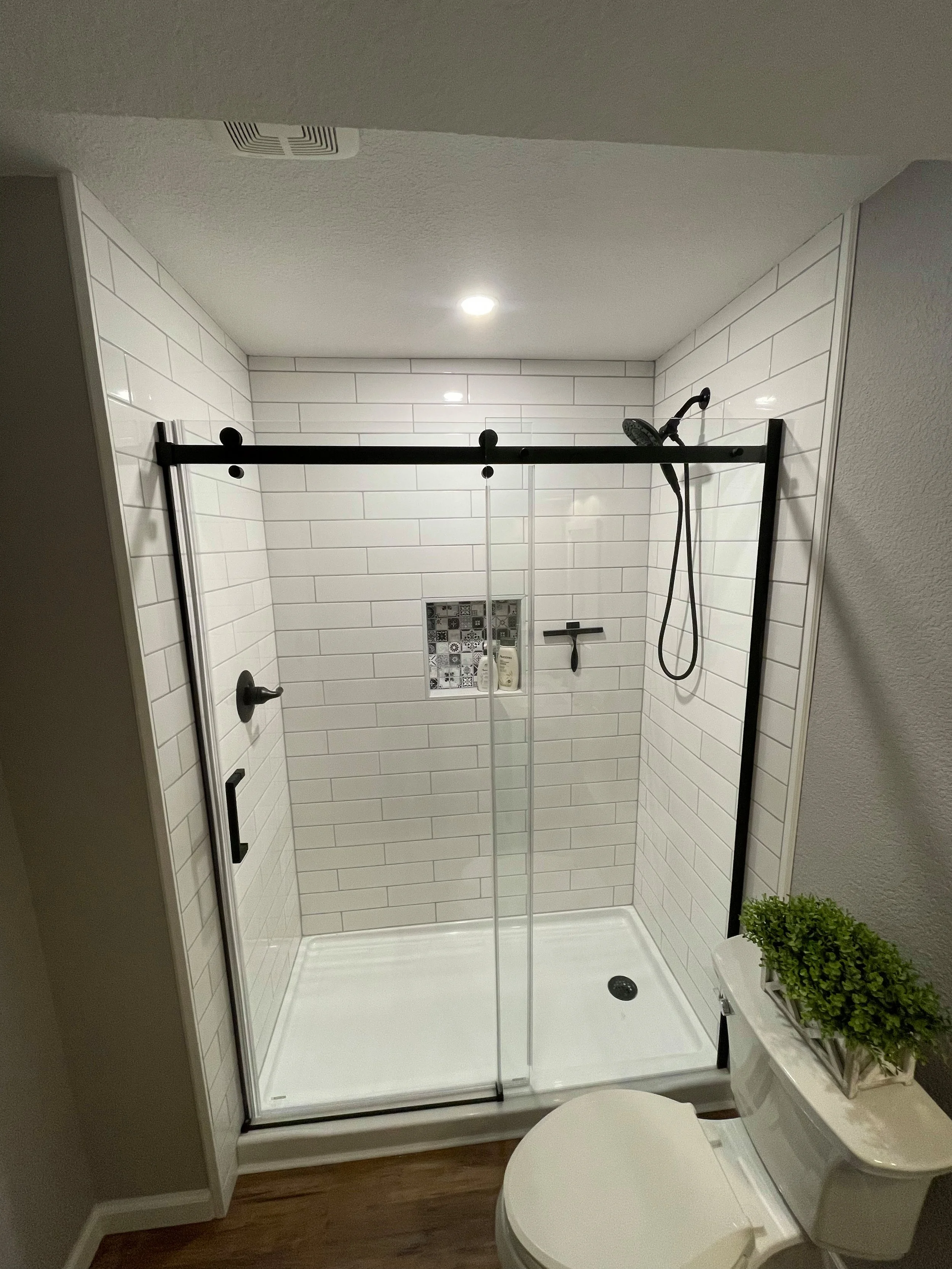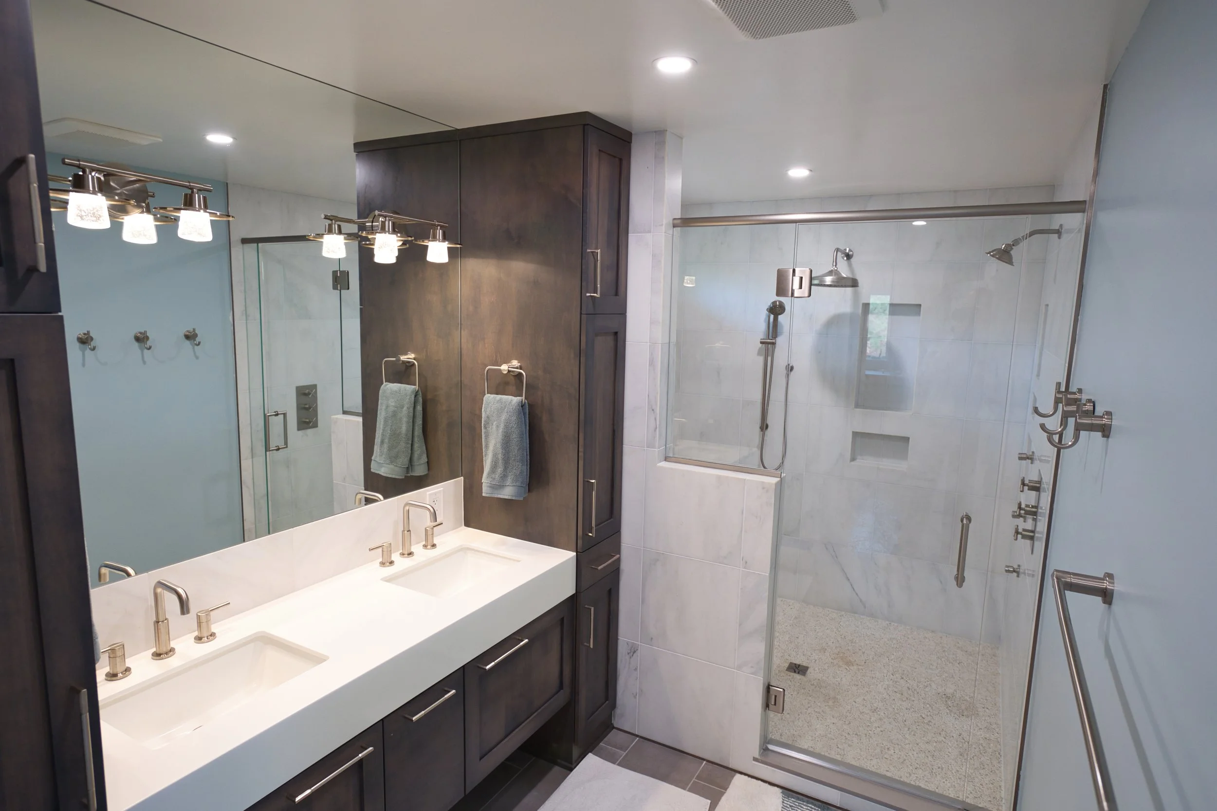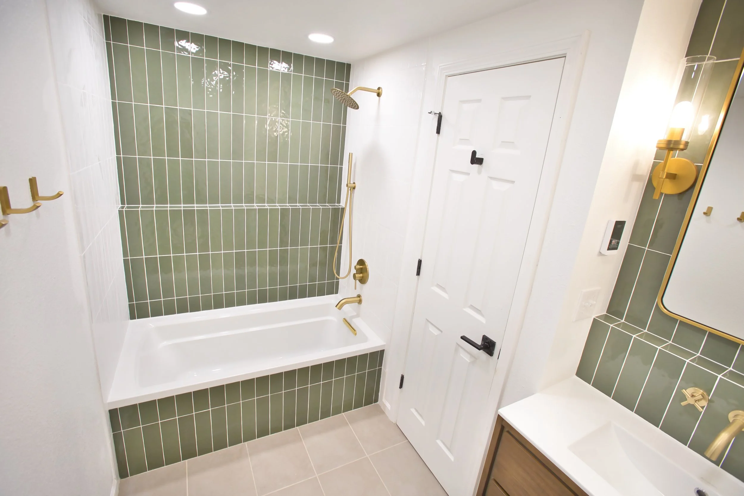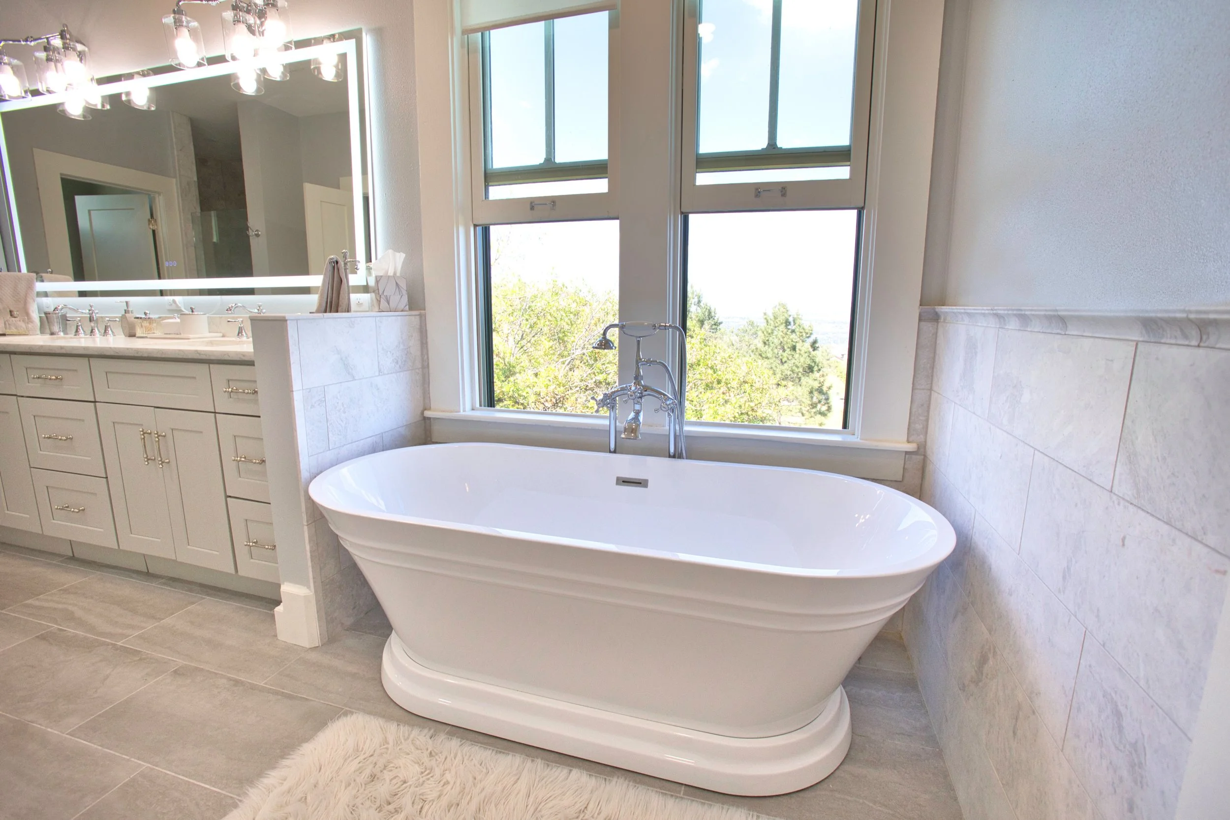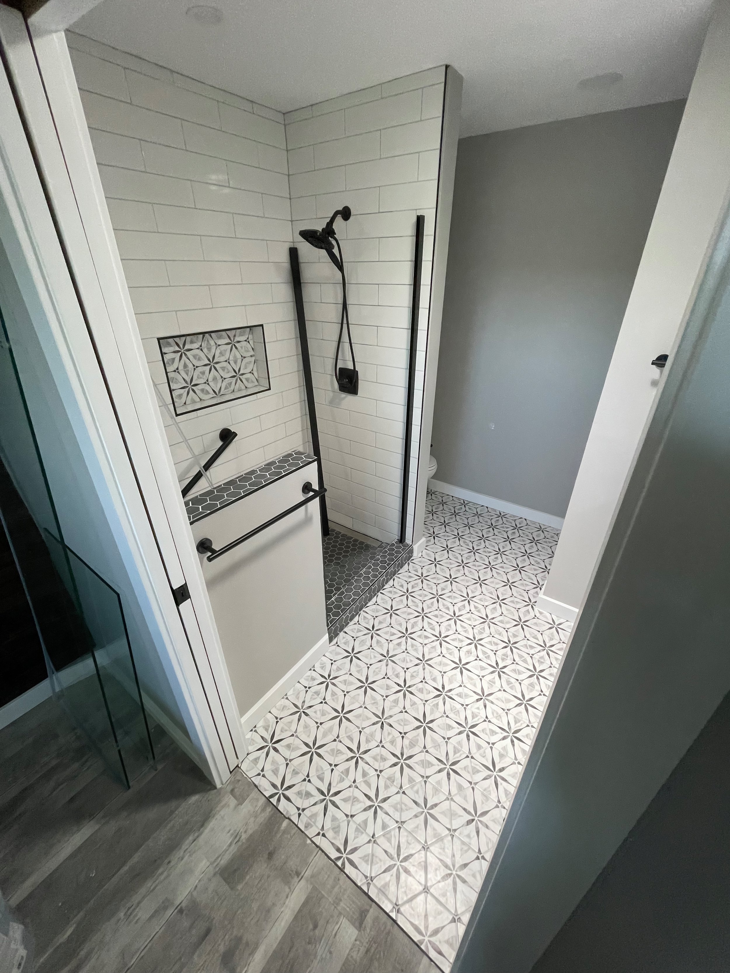 The Overlook Marble Ensuite Subway Tile Tub Large Format Tile Shower Modern Bath Trex Deck Mother-In-Law Suite Basement Craft Room Tile Fireplace Subway Tile Bathroom Wooden Deck Backsplash Miscellaneous Projects